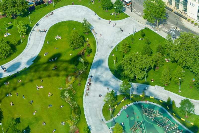 Lawns should be mowed weekly during growing season and maintained year-round according to seasonal guidelines.